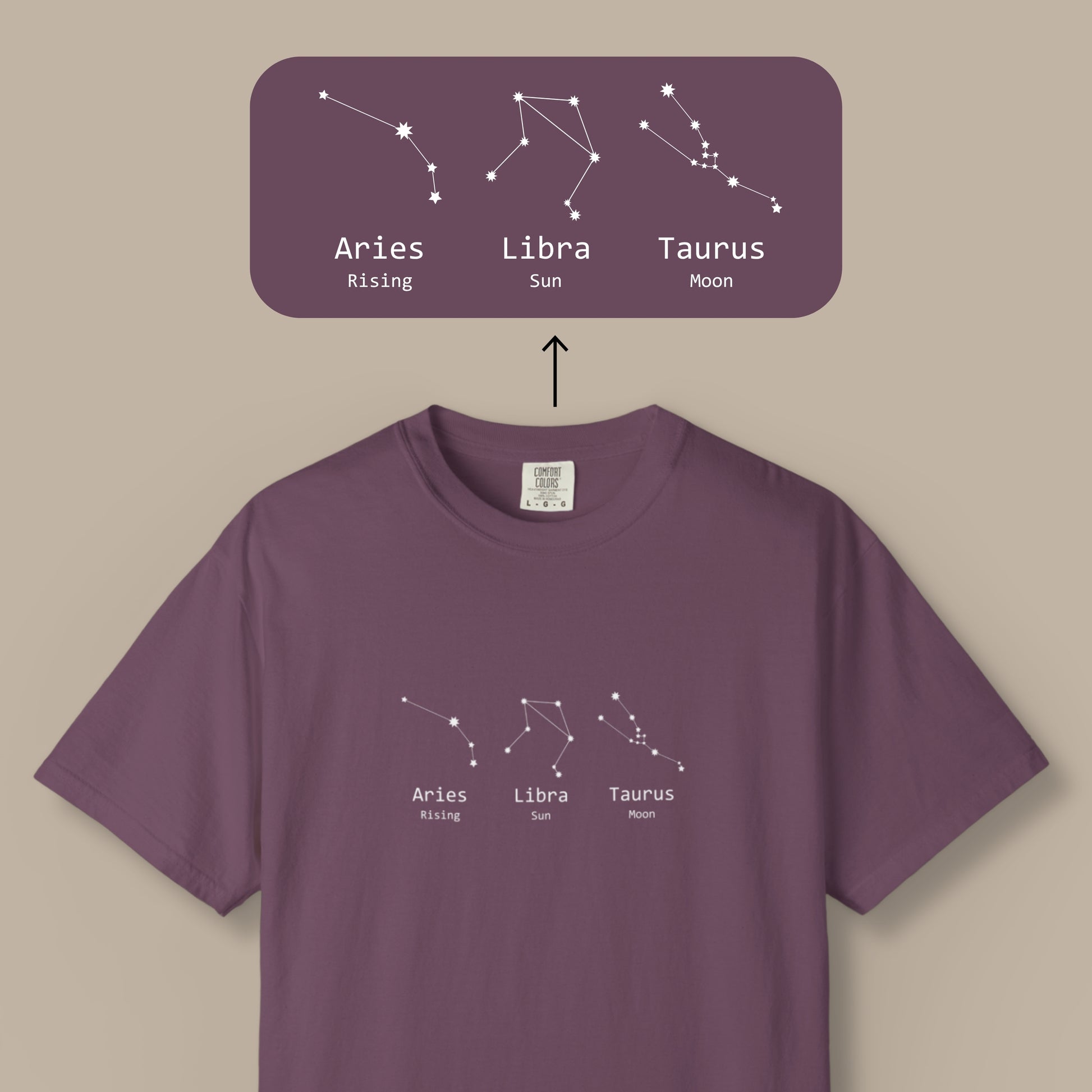 🌙 Personalized Astrology Tee – Sun, Moon & Rising Constellations