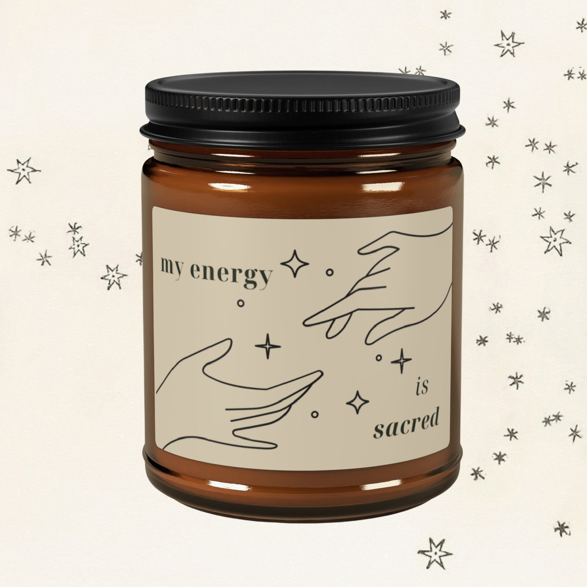 Hand-poured in the USA, our “My Energy Is Sacred” candle is crafted with a 100% natural soy wax blend and pure cotton wick for a clean, mindful burn. Each candle is designed to help you protect your sacred space and restore inner balance.